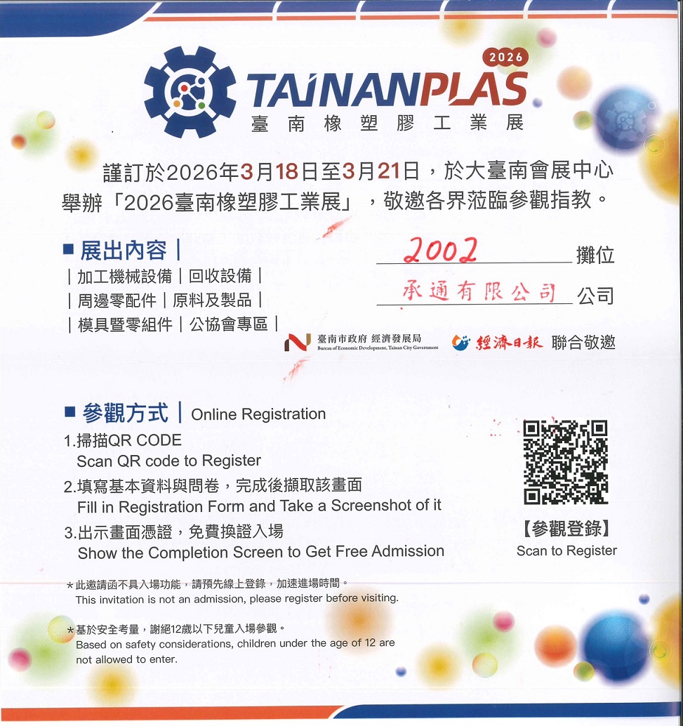 2026 台南橡塑膠與模具加工工業展 03/18-03/21